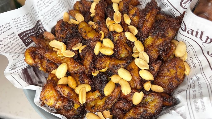 Spicy fried ripe plantain cubes seasoned with ginger, chili, and spices. A popular nighttime street snack, often eaten with groundnuts.